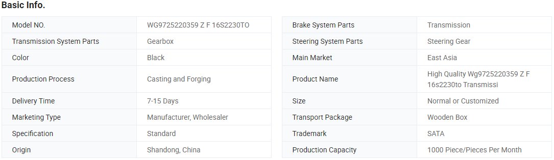 Model Number: | WG9725220359 Z F 16S2230TO | Truck Model: | Howo |